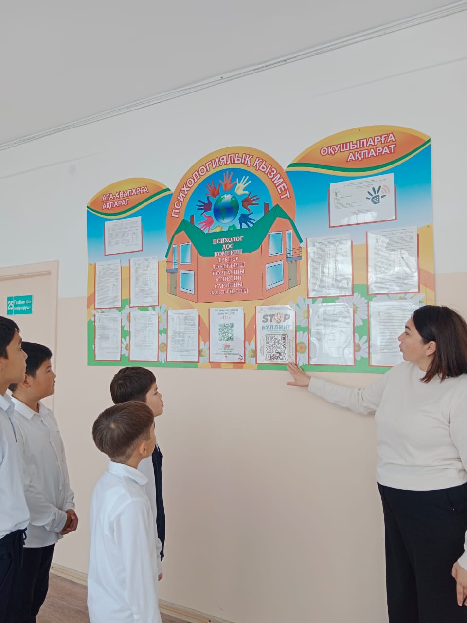 Біздің мектептің барлық оқушылары қиын жағдайда көмек алуға мүмкіндігі бар. Егер сізге көмек қажет болса–оны кез келген уақытта КодАктив «STOP БУЛЛИНГ» жедел көмек бағдарламасы арқылы алуға болады. Бұл кодтар біздің мектебімізде орналастырылған. Осыған орай 1-11 сыныптар арасында КодАктив «STOP БУЛЛИНГ» арқылы кез келген уақытта білікті мамандар қолдау көрсетіп, сіздің сенімді көмекшіңіз болатыны жайлы және QRкод сканерін пайдалану жайлы оқушыларға ақпарат берілді.