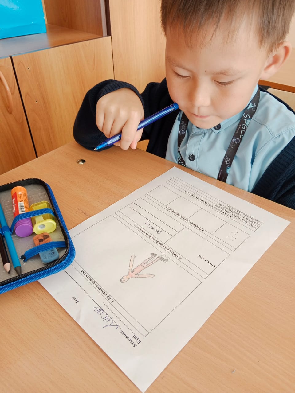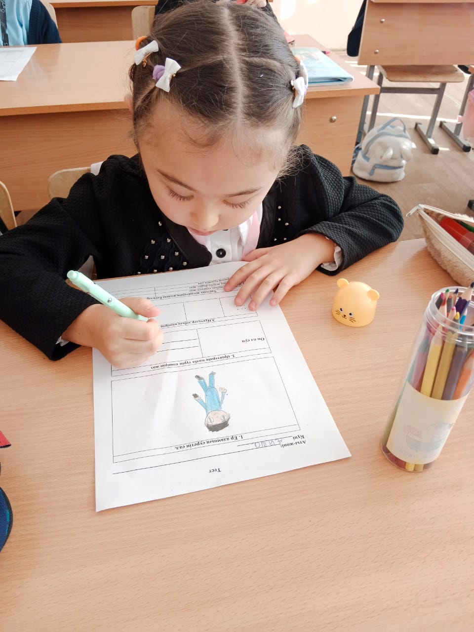 - Адам суретін салу – баланың қабылдауын, моторикасын және ойлау қабілетін көрсетеді. Оқушылар берілген тапсырмаларды толық орындап шықты.
